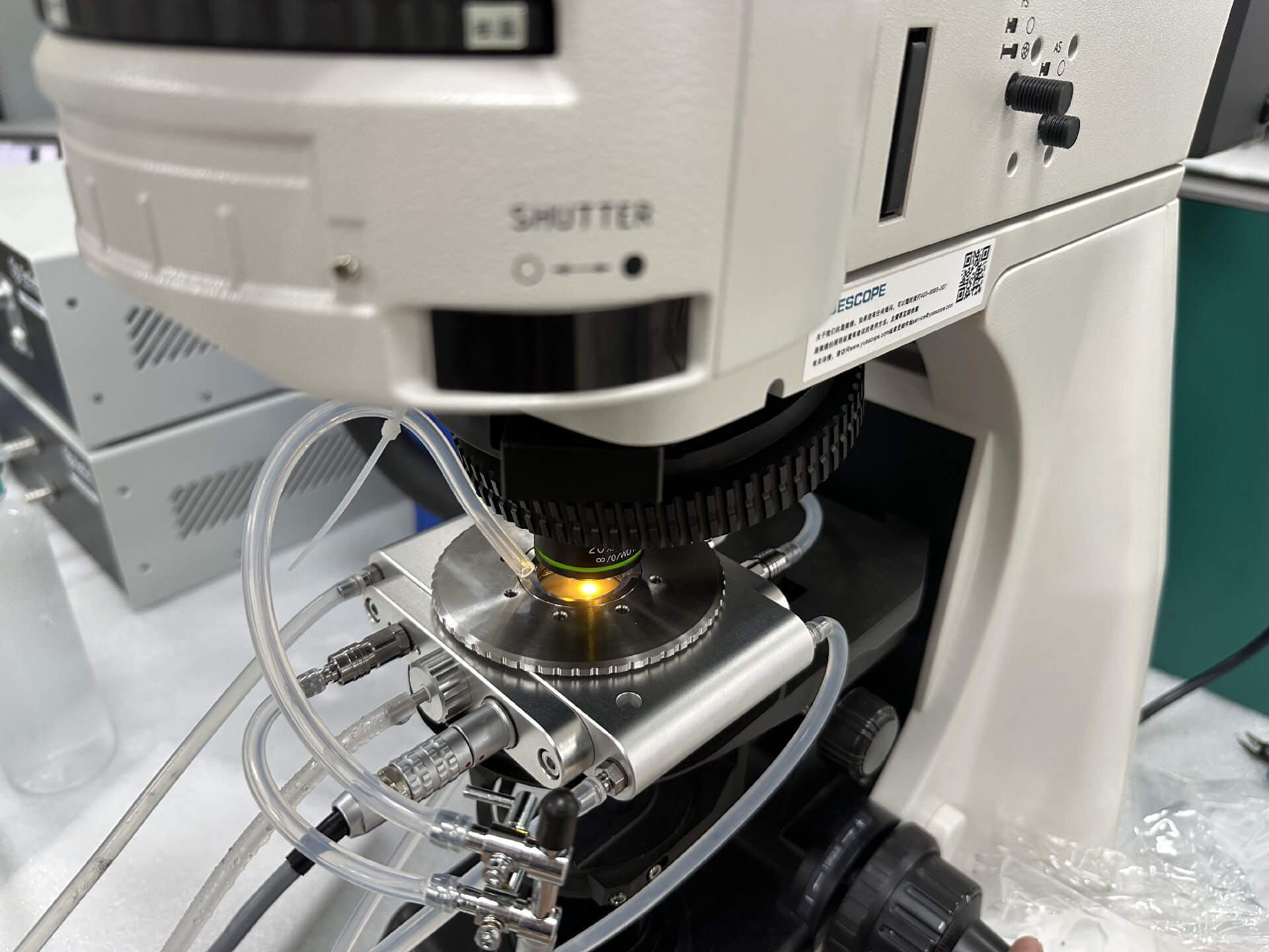 4、对焦:盖上冷热台视窗盖,调整显微镜物镜对准视窗玻璃并调好观测焦距;