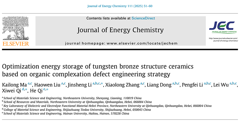 文章名:《Optimization energy storage of tungsten bronze structure ceramics based on organic complexation defect engineering strategy》