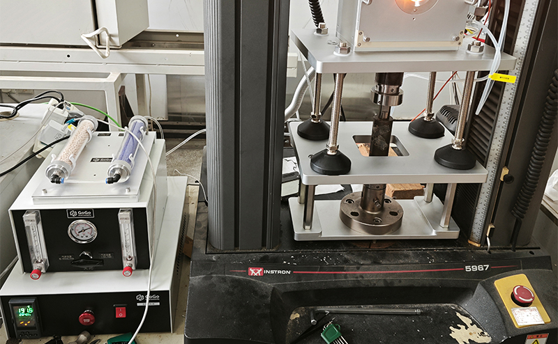 1、定制特殊材料夹具适配英斯特朗万能试验机,满足在高温下5000N高强度拉伸性能。