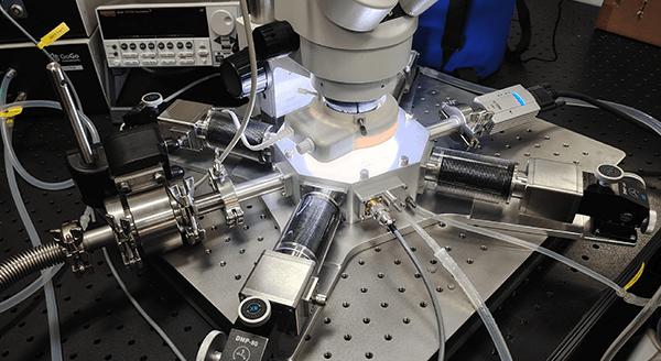 - 根据客户需求,果果仪器为杭州电子科技大学定制电学冷热台,对样品硅片进行现场控温测试。该定制电学冷热台是一款针对研究样品变温电学性能测试而设计的产品,可表征样品电学性能随温度变化的特征。