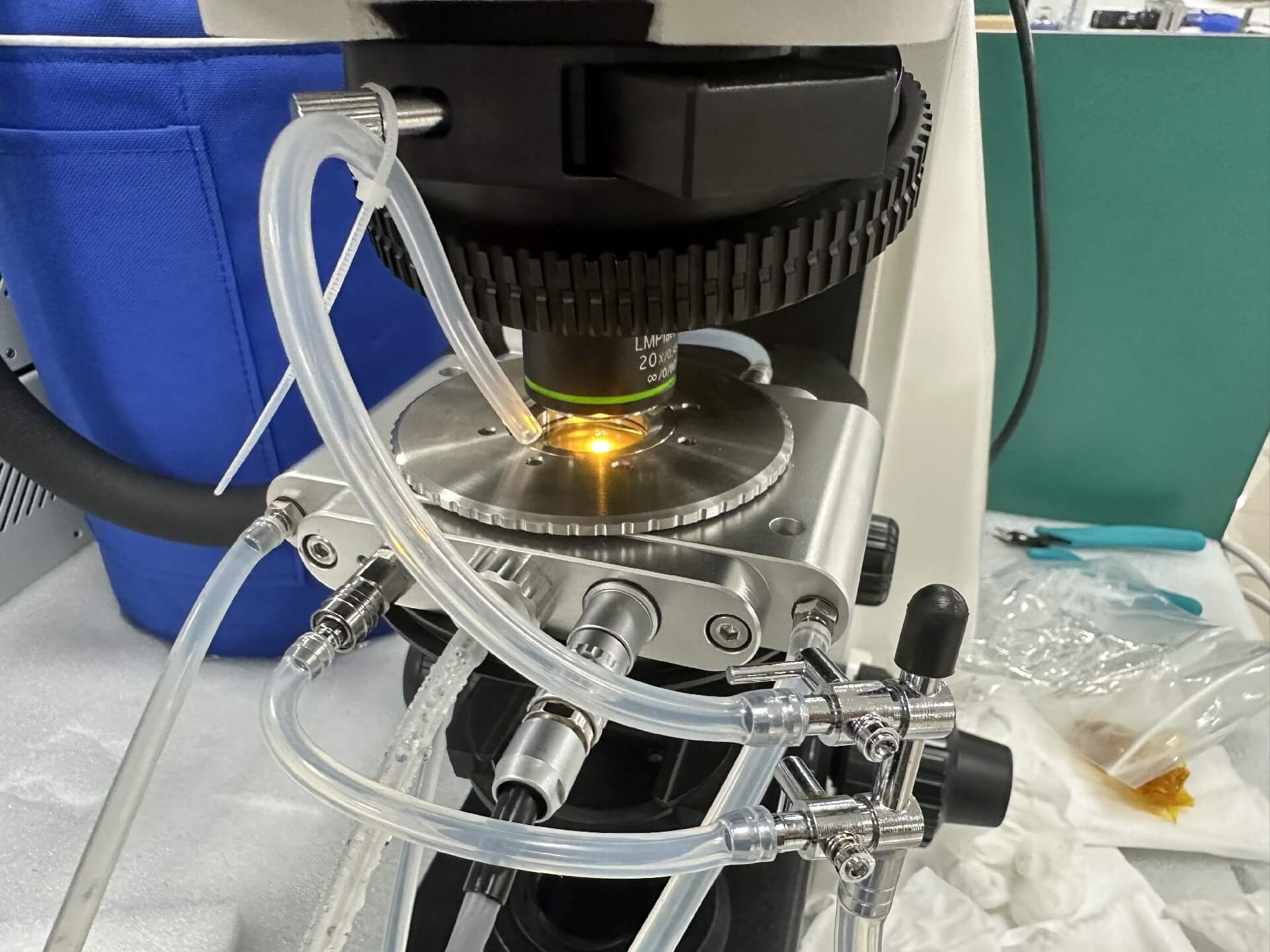 4、对焦:盖上冷热台视窗盖,调整显微镜物镜对准视窗玻璃并调好观测焦距;