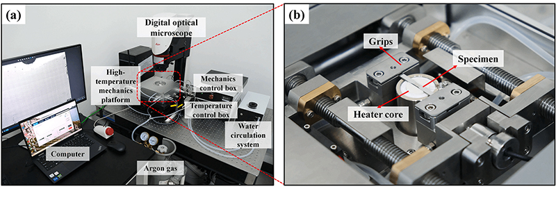 2024年9月,北京航空航天大学能源与动力工程学院团队在《Optics and Lases in Engineering》期刊发表重要研究成果,提出基于紫外光刻与磁控溅射工艺的耐热光栅制备方法,并成功应用于镍基单晶高温合金(NBSC)在1000℃下的微尺度变形测量。果果仪器的5000N 1200℃超高温拉伸台作为核心设备,为该研究的高温原位力学实验提供了精准支持,助力科研团队突破高温测量技术瓶颈。