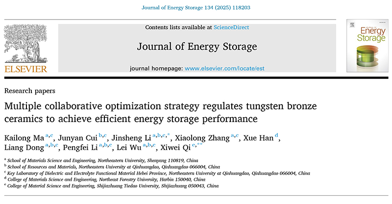 文章名:《Multiple collaborative optimization strategy regulates tungsten bronze ceramics to achieve efficient energy storage performance》