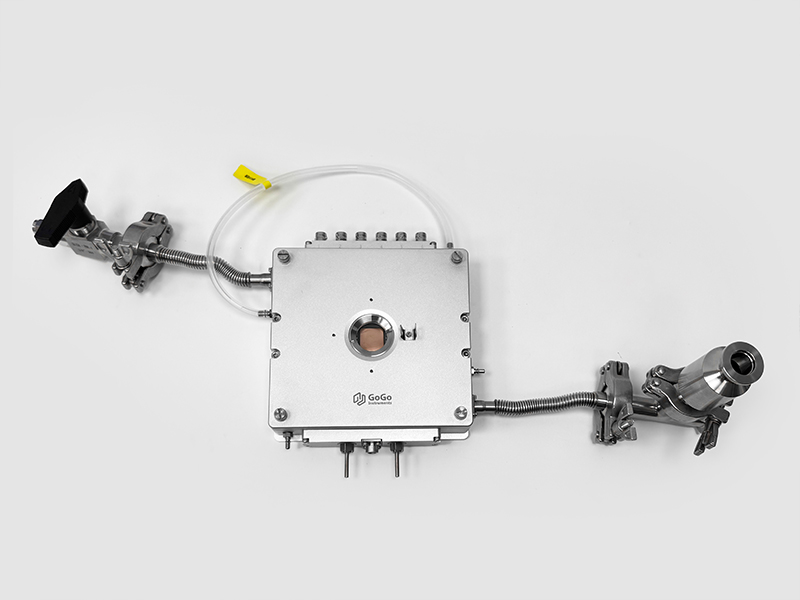 设备配有电学接口,可外接半导体参数分析仪,实现低至fA级的漏电流测试。针对高倍物镜观测需求,设备还集成独立气路系统,既支持真空测试,也可在预抽真空后通入惰性气体进行温控实验,进一步减小振动对高分辨观测的影响。