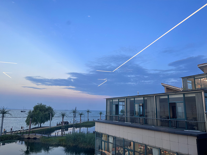战后,众人筋疲力尽却心情畅快。湿透的衣服贴在身上,竟也不觉得难受。开往晚餐目的地的大巴车上,少了来时的喧闹,多了几分温馨。有人靠着窗小憩,有人低声交谈,小伙伴们互相分享着之前拍下的滑稽照片。夕阳西下,车厢内弥漫着一种疲惫而满足的宁静。