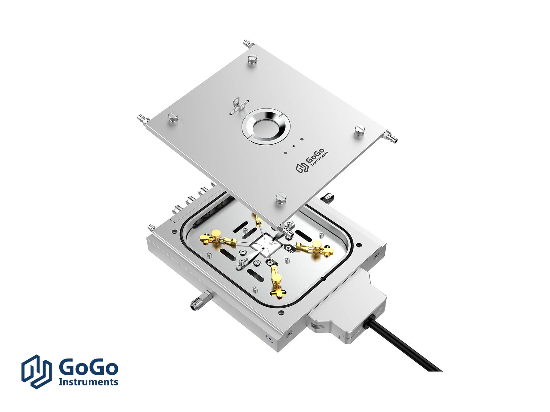 探针冷热台专为样品变温电学性能测试而设计,用于表征材料电学特性随温度的变化规律。该设备在光学冷热台基础上,集成了电学模块(包含探针、位移机构及电学接口)。通过移动探针,可实现针尖与样品表面任意区域的精准接触。电信号经由探针、信号线、接口等,传输至外部测量仪器(如源表、数字万用表等),获取相关电学数据,进而分析材料在不同温度下的电学特性。