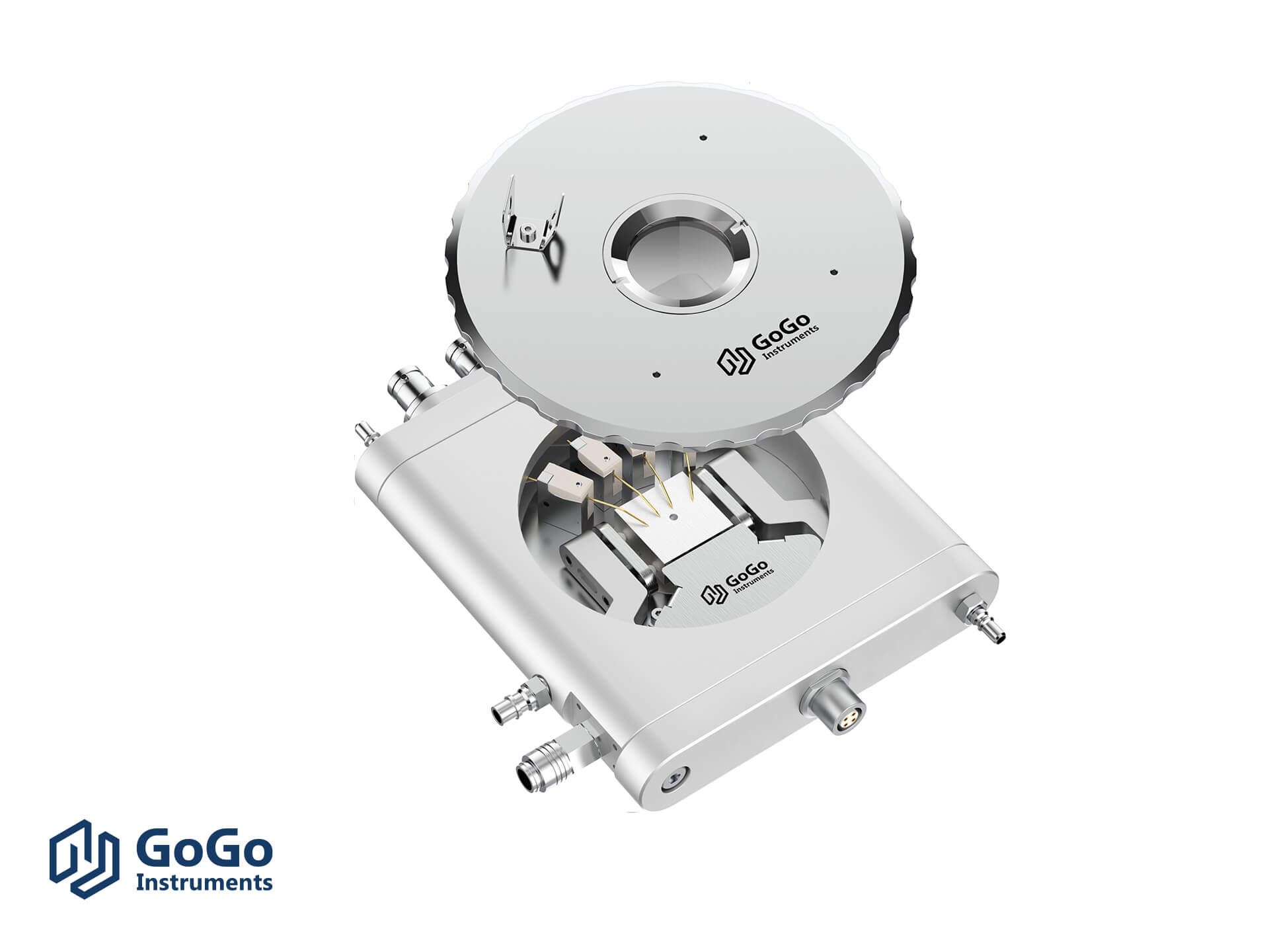 探针冷热台专为样品变温电学性能测试而设计,用于表征材料电学特性随温度的变化规律。该设备在光学冷热台基础上,集成了电学模块(包含探针、位移机构及电学接口)。通过移动探针,可实现针尖与样品表面任意区域的精准接触。电信号经由探针、信号线、接口等,传输至外部测量仪器(如源表、数字万用表等),获取相关电学数据,进而分析材料在不同温度下的电学特性。